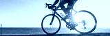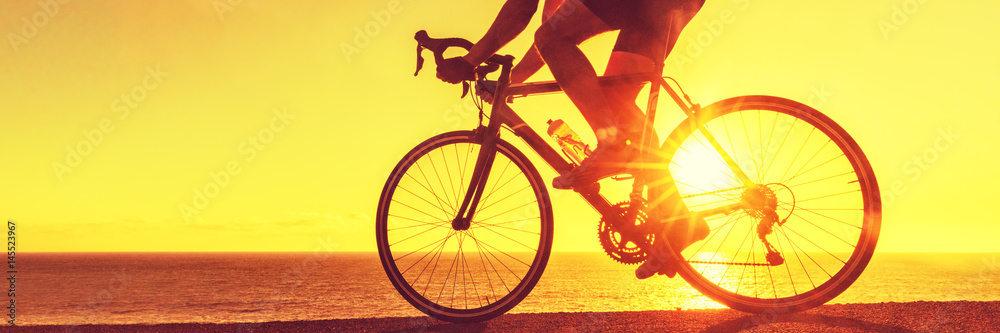 Cyclist biking on road bike sunset banner. Active healthy sports lifestyle athlete cycling.