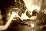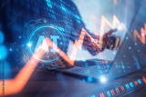 Businessman using AI technology to analyze stock market investment graphs and global gold price trends for strategic decision making