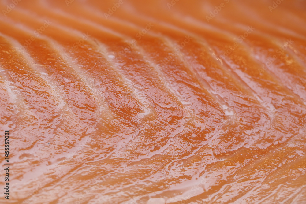 Close-up of fresh salmon fillet with glistening texture