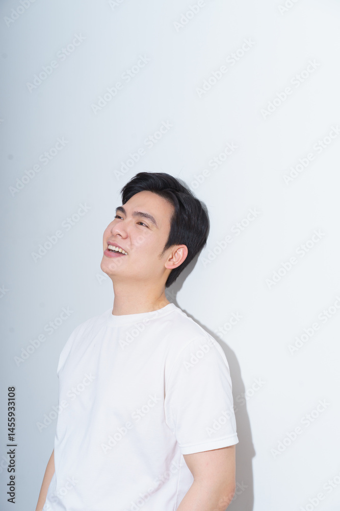 Smiling young man in white shirt standing against a light background in a modern indoor space