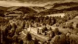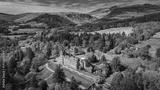 Brodick castle and gardens, Isle of Arran, Scotland. Landscape drone photo