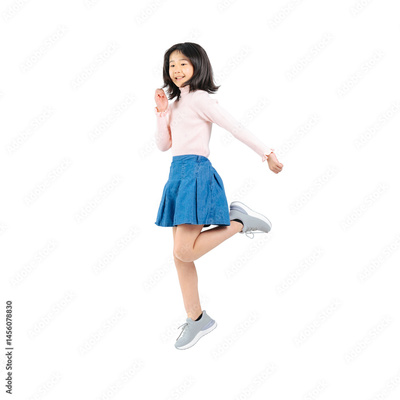 元気にジャンプする女の子 手作業で精密に切り抜いた背景透過全身写真PNG