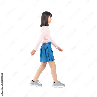 横向きに歩く女の子 手作業で精密に切り抜いた背景透過全身写真PNG
