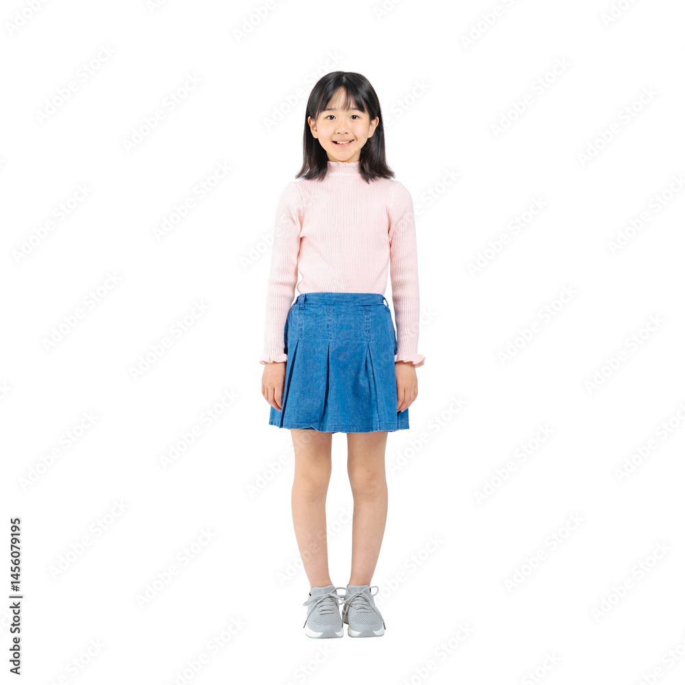 笑顔で立つ女の子 手作業で精密に切り抜いた背景透過全身写真PNG