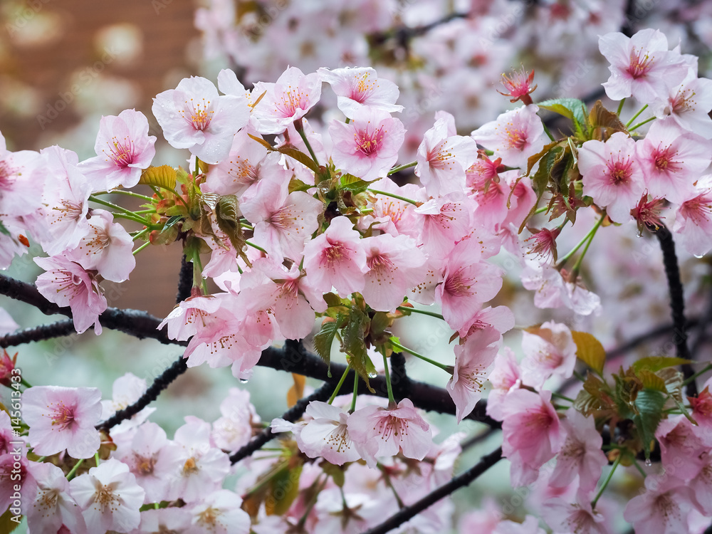 Beautiful Pink Sakura Flowers in Japan, Selective Focus