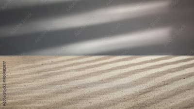 Sunny sand background with footprints and sunlight and shadows - natural product display scene.