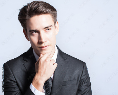 Brainstorming. Portrait of young thoughtful businessman thinking.