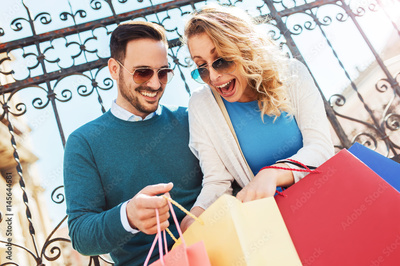 Shopping time. Beautiful couple in shopping. Consumerism, shopping, lifestyle concept