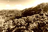 Morning light hits young coffee plants in the coffee triangle near Manizales, Colombia.
