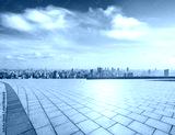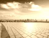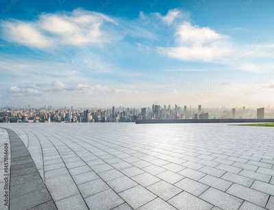 Empty square floor and city skyline with modern buildings scenery in Shanghai
