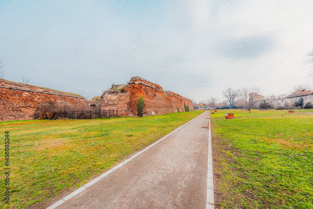 Fortificated brick walls of Oradea castle. Western Transylvania in Romania. Historical cultural city in europe