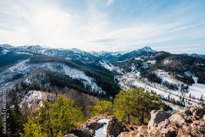 Winter snow Hiking near city of Zakopane wit view of poland Tatras mountains from Nosal peak, Poland