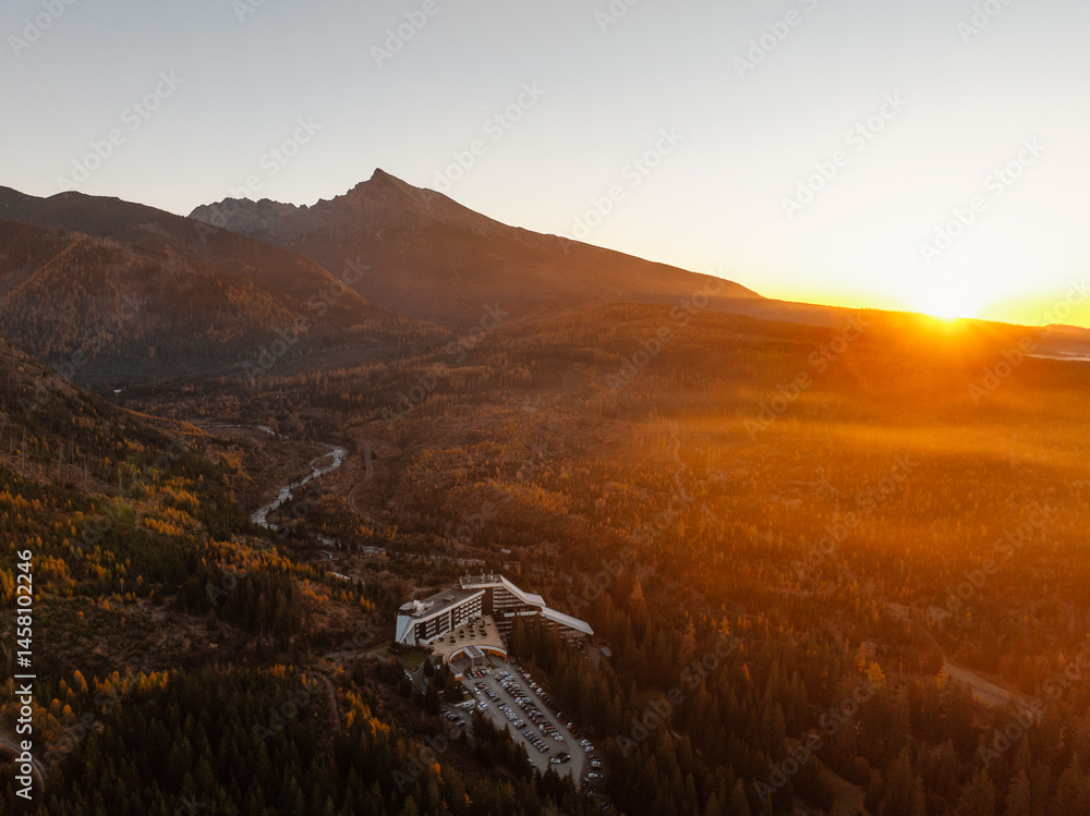 Sunset over Liptov region with and High Tatras mountains around. Krivan landspace, slovakia. Podbanske.