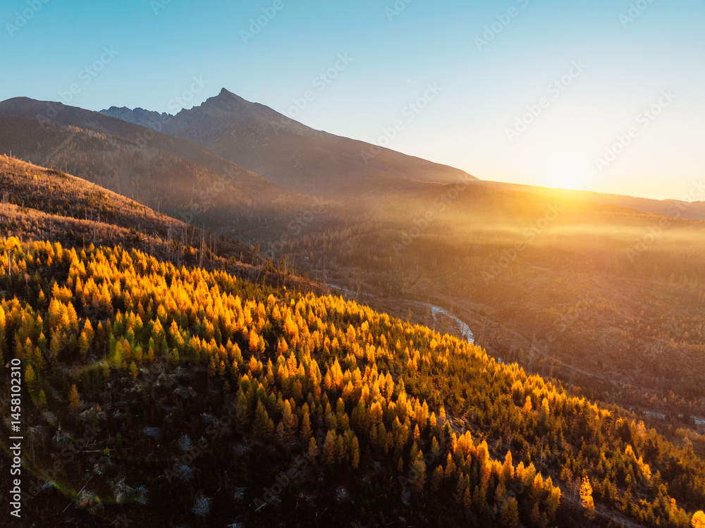 Sunset over Liptov region with and High Tatras mountains around. Krivan landspace, slovakia. Podbanske.