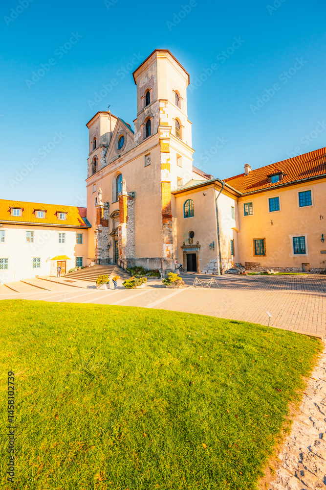 Benedictine abbey, monastery and church on the rocky cliff and Vistula river. Tyniec near Krakow, Poland.