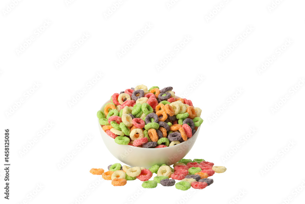 PNG,Colorful cornflakes in a bowl, isolated on white background