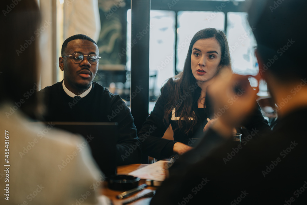 Group of people participate in a business meeting, discussing ideas and strategies in a professional environment. The scene highlights teamwork, collaboration, and focus on achieving shared objectives