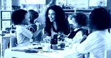 Education, children or painting with teacher in class for art, creative talent or motor skill development in preschool. Learning, students drawing or teaching happy kids for lesson or help with color