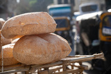 Freshly oven baked traditional Baladi flat bread, for sale in Cairo, similar to pitta bread is a staple of Egyptian cuisine is cooked and sold all over Egypt