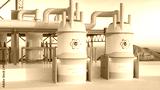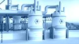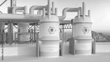concept of a SMR small modular nuclear reactor power plant on a sunny day. SMR is a future energy concept.