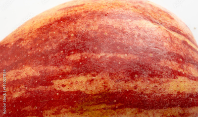 Red apple skin macro texture. Honeycrisp fruit surface close up, fresh spotted and striped apple