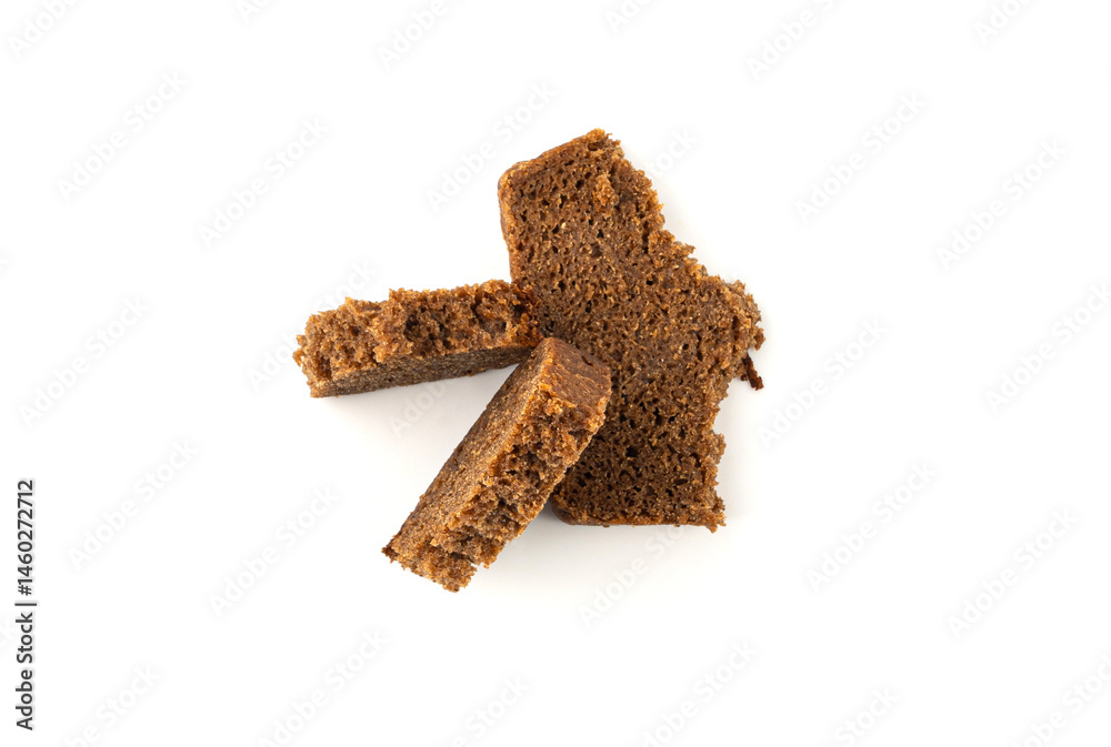 Black rye bread isolated, dark brown sliced loaf, sourdough borodinsky rugbrod square slices