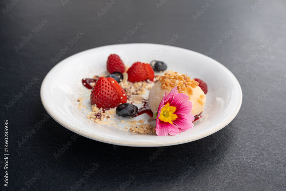 Fruit mochi rice cake, white daifuku, Japanese traditional dessert, round wagashi, asian candy