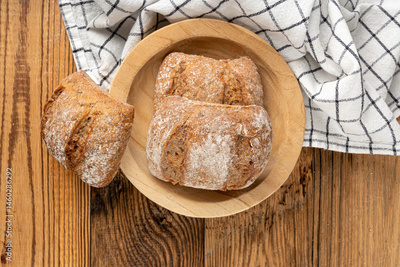 Brown rye bun, square gluten free bread, whole grain healthy breakfast bread