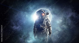 Astronaut in outer space. Mixed media