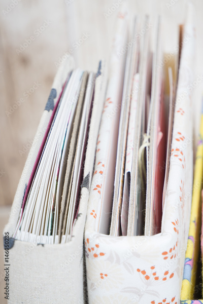 Notebooks, planners and photo albums in scrapbooking style with colorful pages