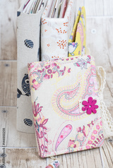 Notebooks, planners and photo albums in scrapbooking style with colorful pages
