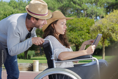 man in wheelchair and girlfriend on holidays