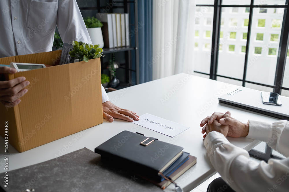Resignation. Business people breaking the contract with resignation letter staff reduction leaving the office