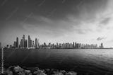 panorama of skyscrapers in Dubai Marina, sunset time, UAE