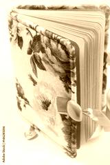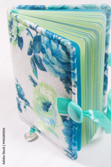 Notebooks, planners and photo albums in scrapbooking style with colorful pages