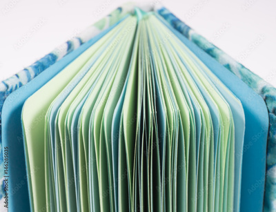 Notebooks, planners and photo albums in scrapbooking style with colorful pages