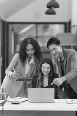 A group of businessmen discussing investment and business growth, showing the results of successful teamwork.