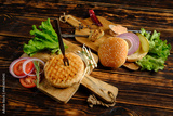 Fresh ingredients for a vibrant, mouthwatering plant-based burger are beautifully displayed