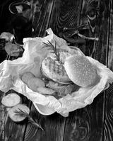 Enjoy a tantalizing grilled chicken burger surrounded by fresh vegetables and crispy potatoes