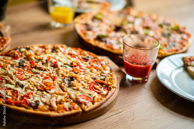 Freshly baked pizzas with bright toppings invite all to enjoy a delightful meal
