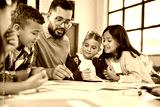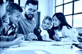 Teacher checking children homework at school