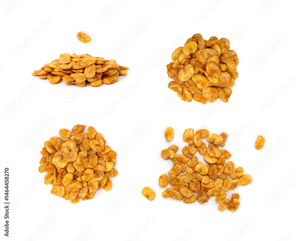 Roasted broad beans snack isolated, fried vicia faba, spicy legume, crispy big beans chips for salads