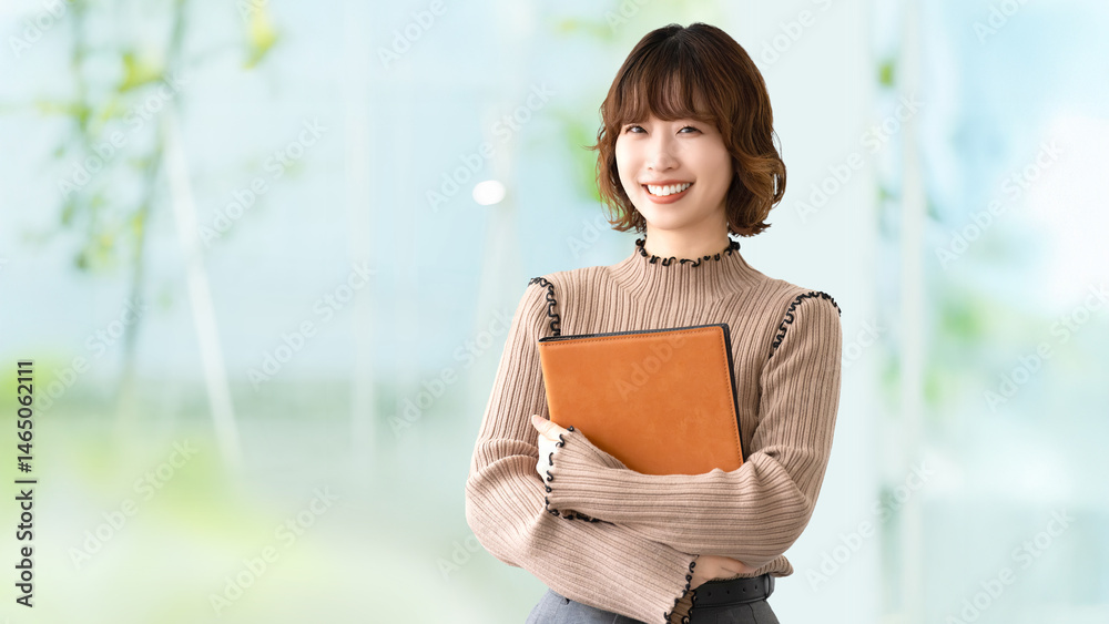 バインダーを持つ笑顔の女性・ビジネスウーマン