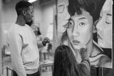 Multiracial students inside university art classroom - Young people painting on canvas - School concept