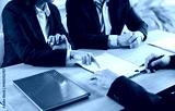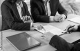 Cropped shot of two people business clients pointing fingers at a paper contract agreement on an office desk to clarify information, ask a question, or point at a mistake in the document