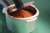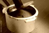 Preparing fresh coffee grounds in a metal coffee filter
