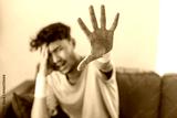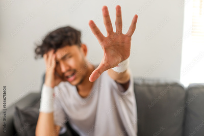 Depressed Young Man Asking for Help at Home. World Mental Health Day.