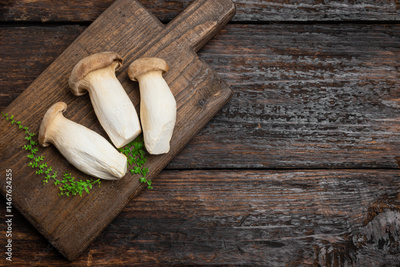 King Oyster Mushroom, Eryngii mushrooms on wooden board