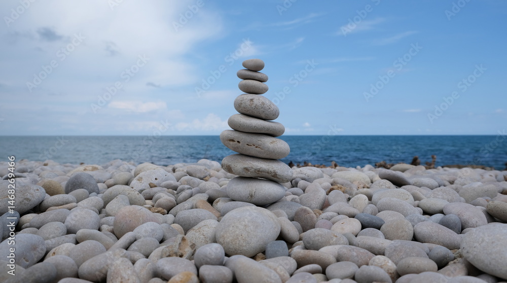 Pyramid of sea pebbles. Life balance and harmony concept.