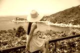 Traveler tourist in action of enjoy the trip sightseeing the sea summer nature in island popular visit on Kohtao of Thailand